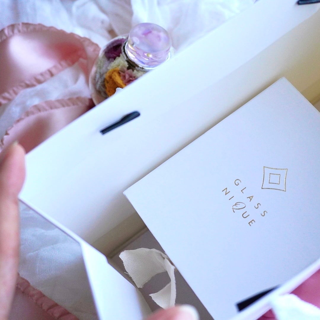 ギフトでもそのままお渡しいただけるよう、シルクのリボンがついた高級感のある引き出しタイプになっています。